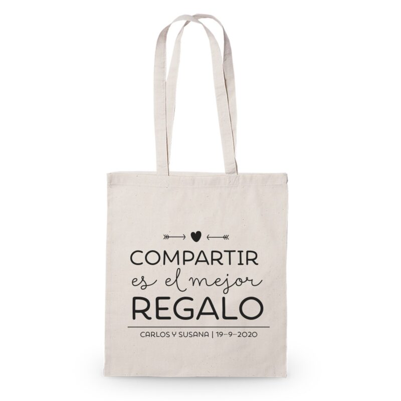 Bolsa de algodón, tipo totebag de 50 x 50 cm, de color blanco roto, con estampación a todo color en transfer de 20 x 30 cm.